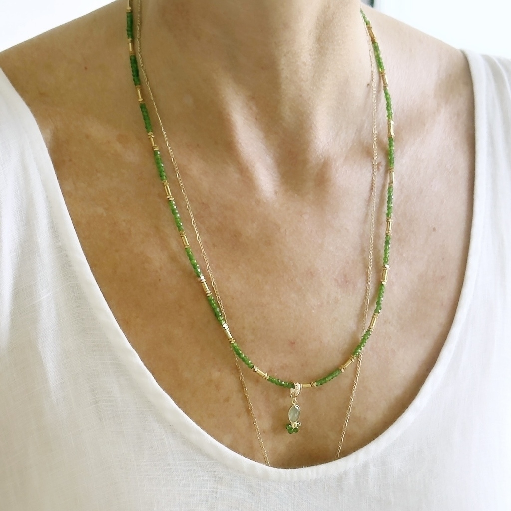 Collar realizado con 133 rondelles de chrome diopside de 3 mm de espesor